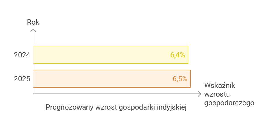 - Dynamiczny wzrost gospodarczy – Indie to jedna z najszybciej rozwijających się dużych gospodarek świata, z prognozowanym wzrostem PKB na poziomie 6,3% w 2024 roku.