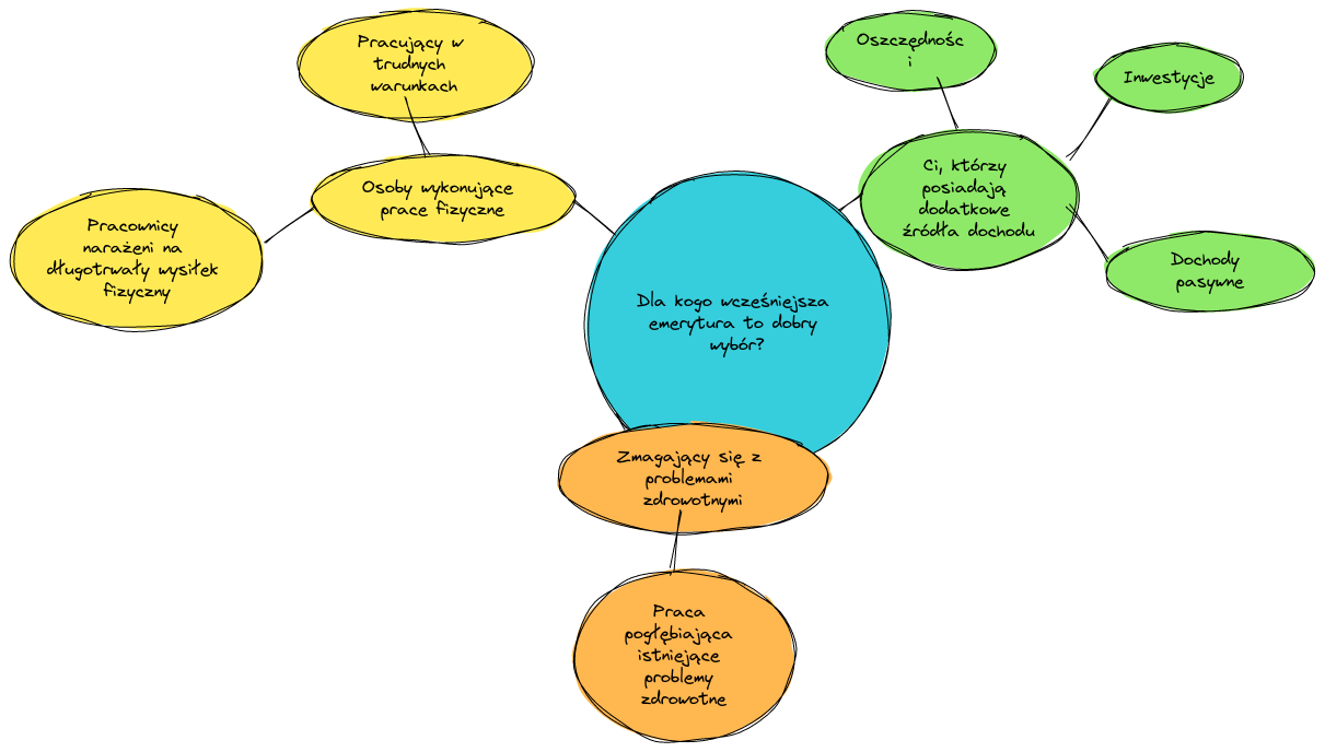- Ci, którzy posiadają dodatkowe źródła dochodu. Osoby z oszczędnościami, inwestycjami czy dochodami pasywnymi łatwiej mogą pozwolić sobie na wcześniejsze odejście z pracy bez obaw o przyszłość finansową.